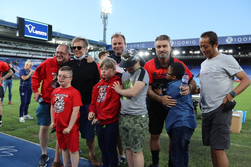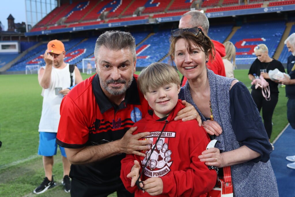 The Penguins enjoyed a lovely warm evening at Selhurst Park on Tuesday night as they attended a celebrity football match in honour of the Great Ormond Street Hospital. Our Head Coach Allan was invited to be Manager of the celebrity team and even put himself on in the second half and our Penguin’s went wild! Our players got to meet all sorts of celebrities and footballers and even got to play at half time on the hallowed turf with the likes of Tamer Hassan, Omid Djalili, Claire Sweeney and Geoff Bell! We all had an amazing time and more importantly the event raised a huge amount of money for G.O.S.H. Thank you Goals4Gosh for inviting us!
